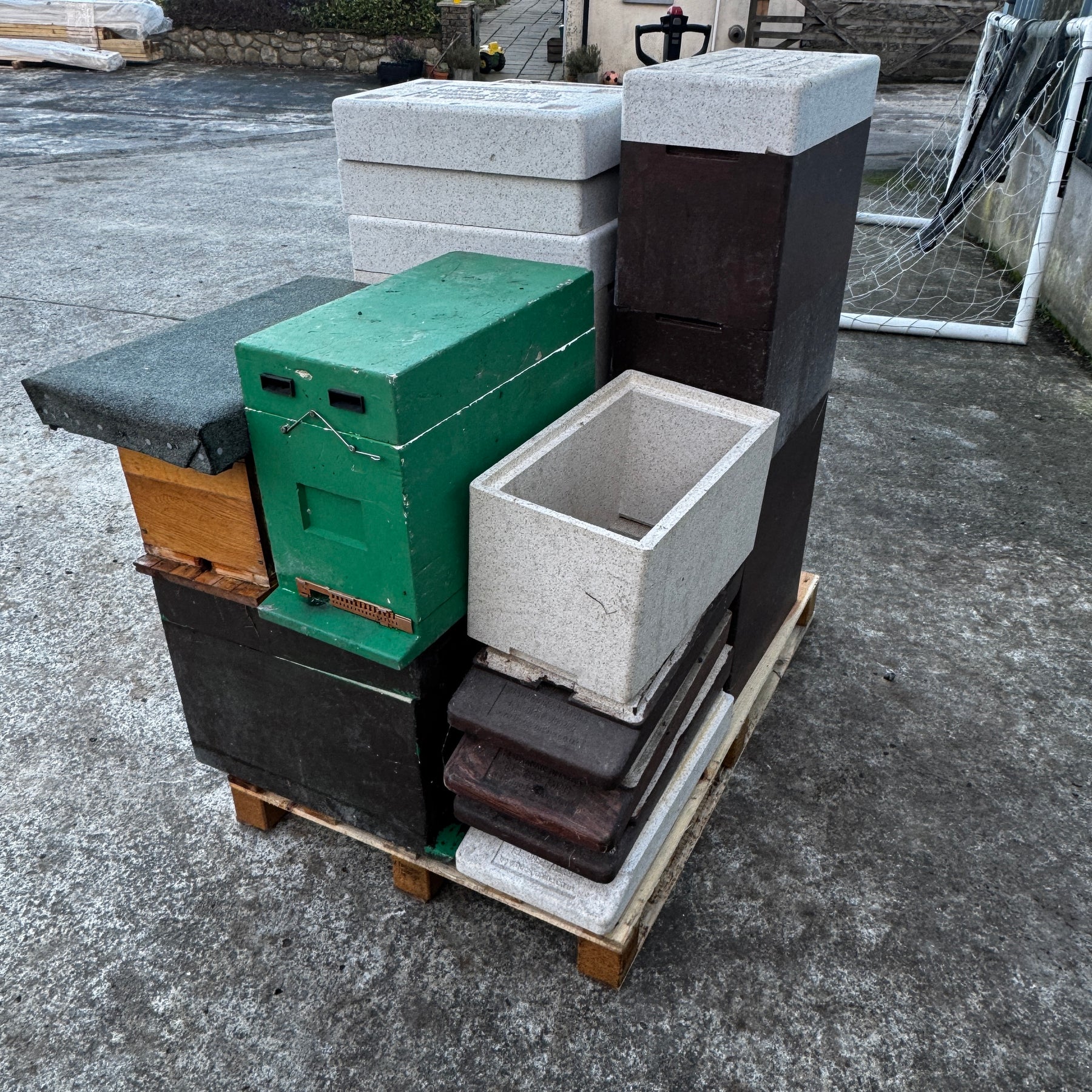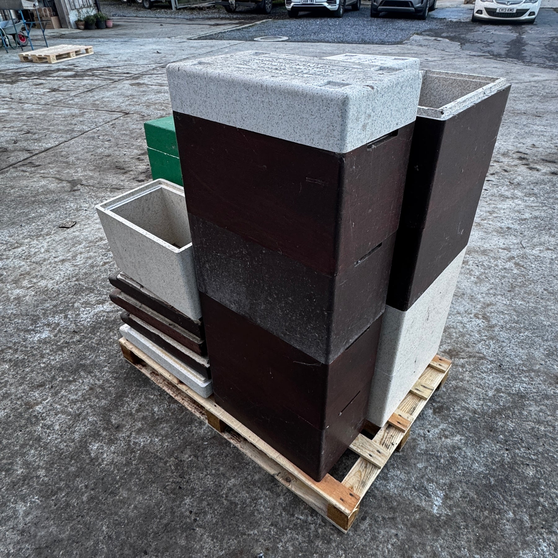 This bundle contains a mixture of new and used commercial poly nuc boxes, floors and roofs.