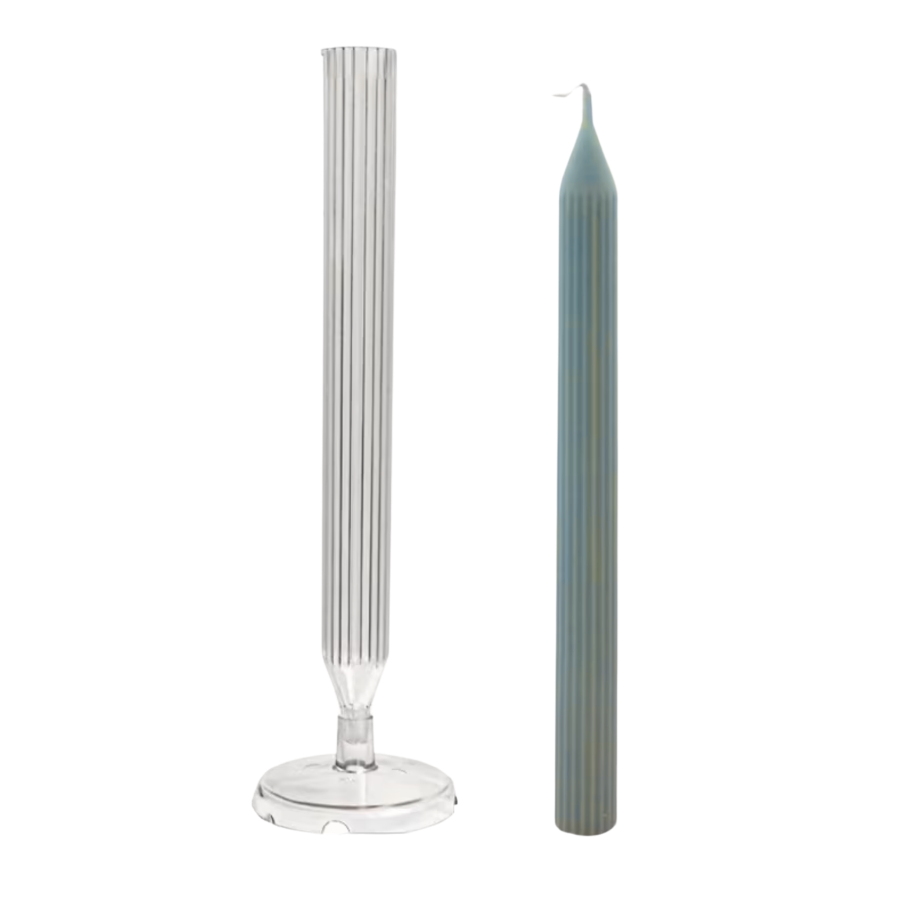 Create elegant ribbed taper candles with a classic finish. This reusable clear plastic mould is ideal for beeswax and wax blends, producing tall, refined dinner candles with crisp vertical detailing.